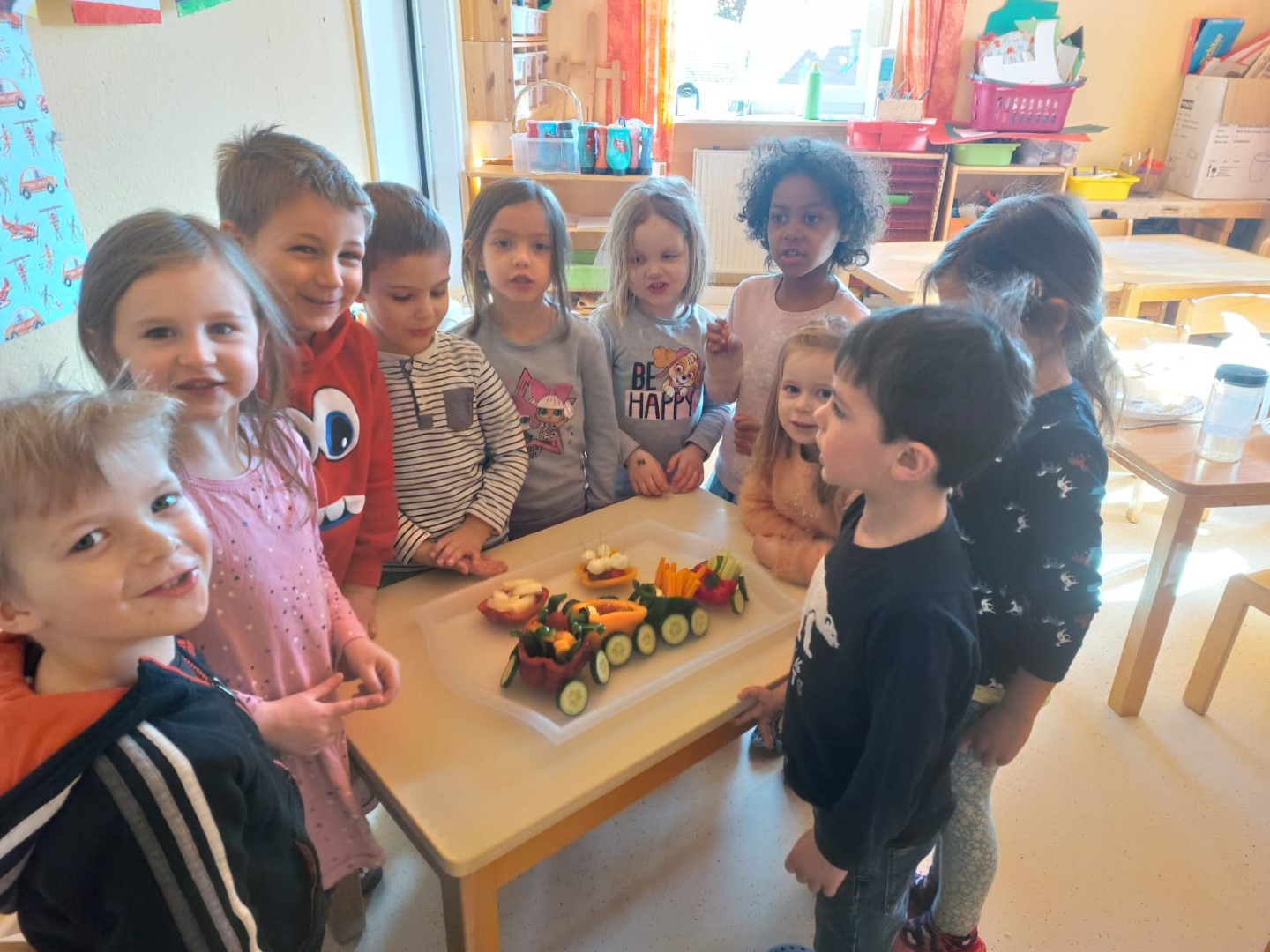 passend dazu kleine Schoko- und Gemüse Züge verspeist.